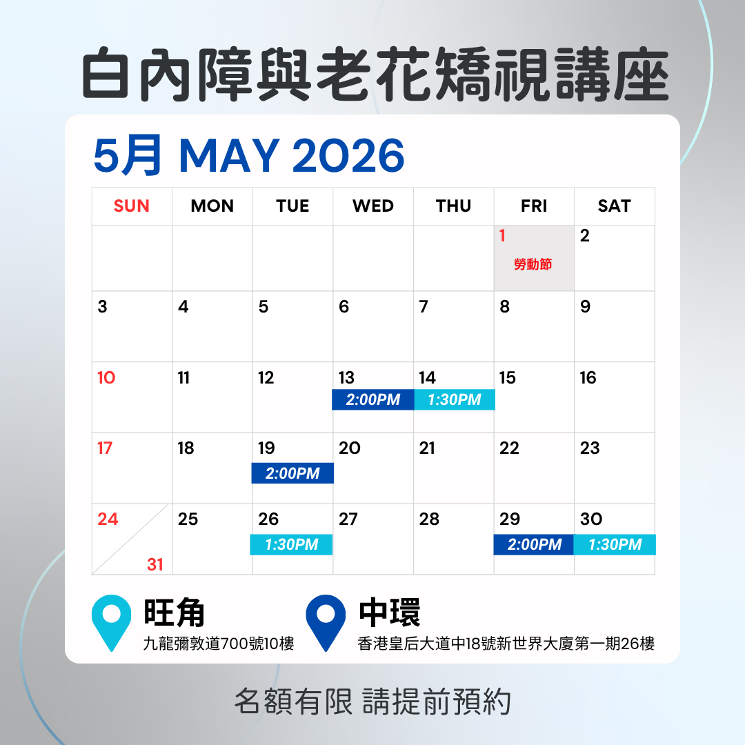由眼科專科醫生主講,講解老花矯視及白內障手術、選擇人工晶體知識、手術流程、護理須知及諮詢問答。